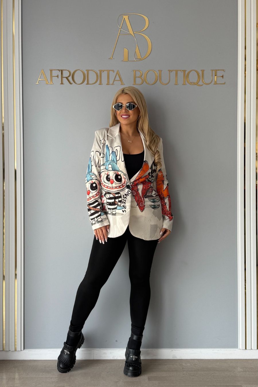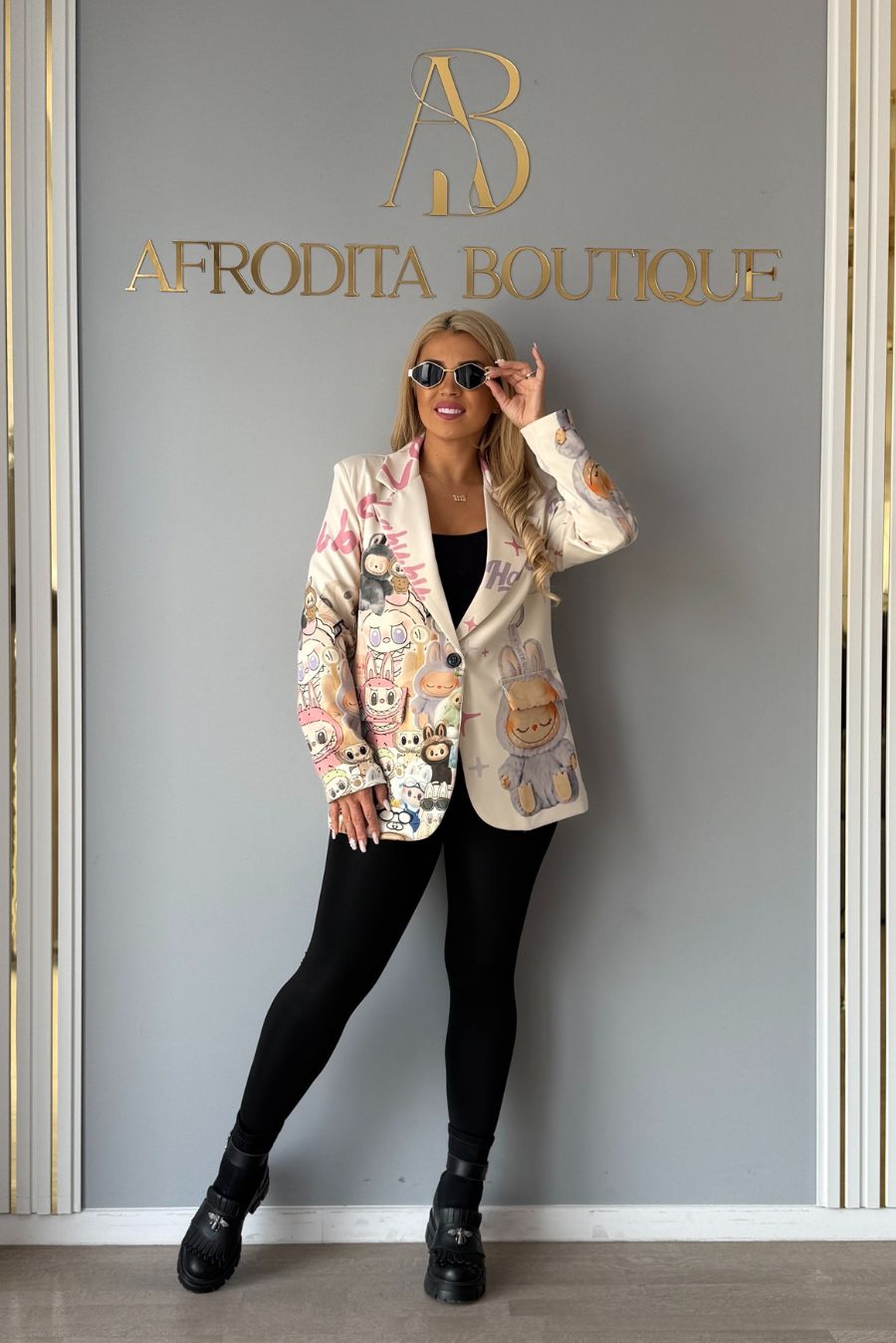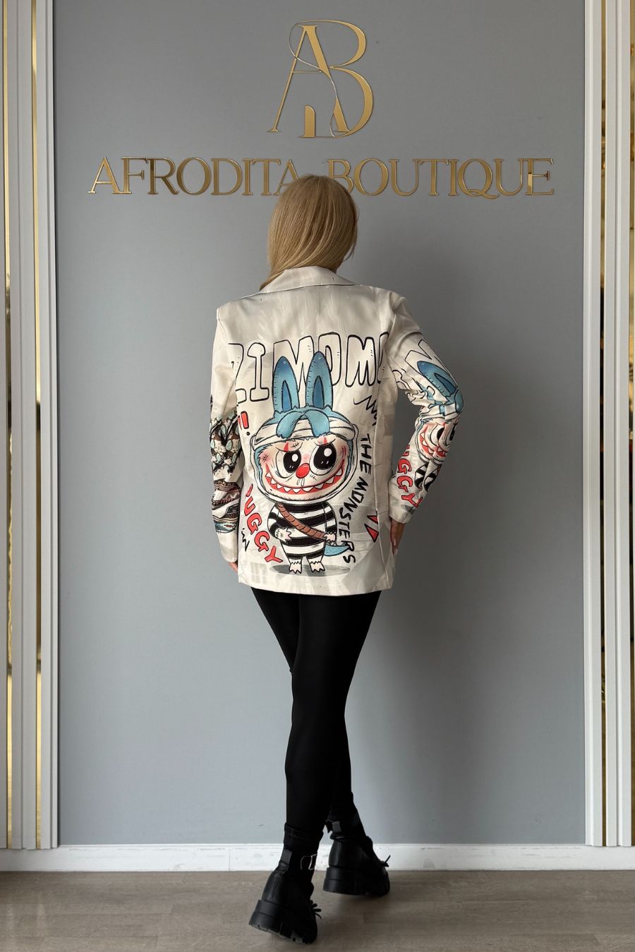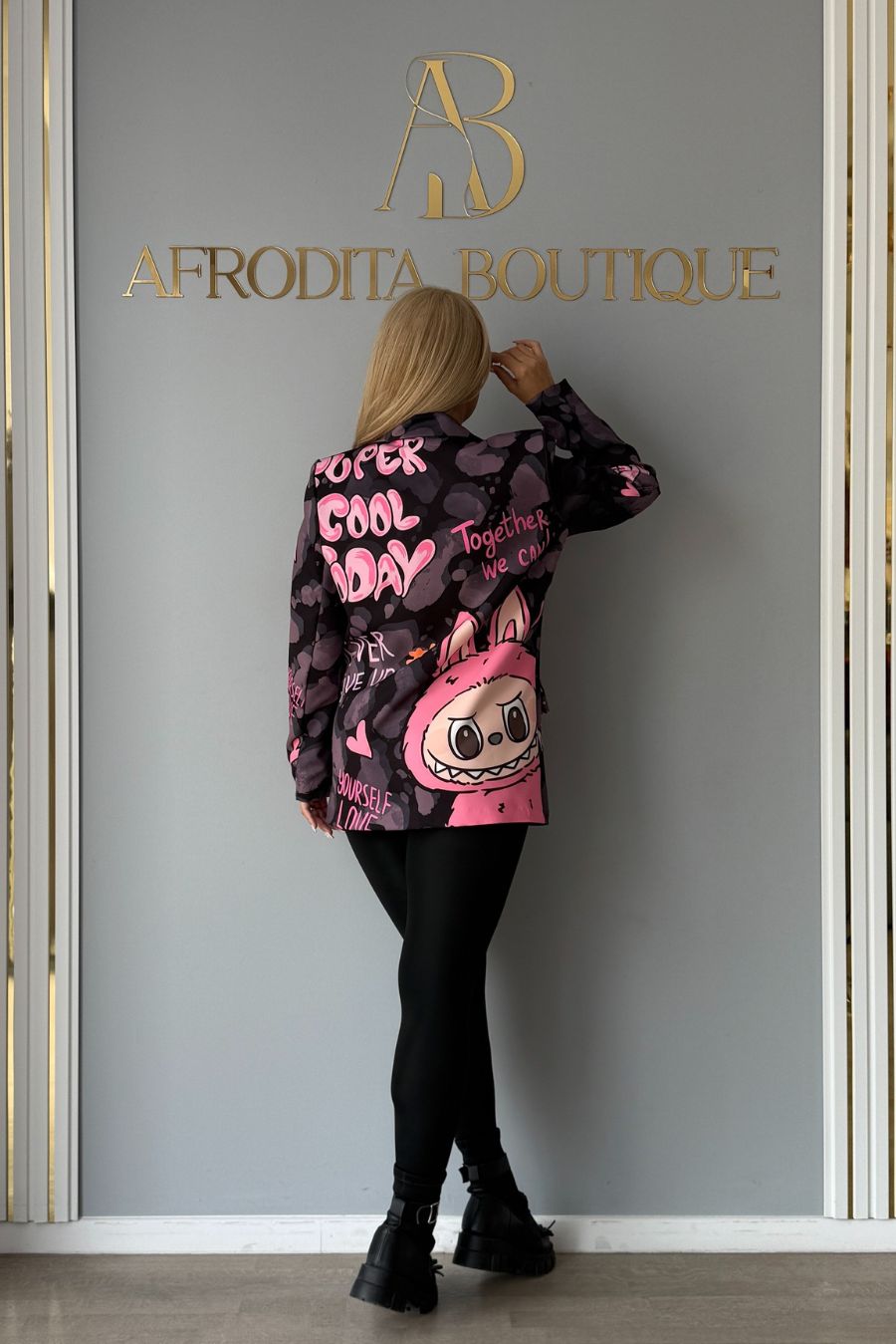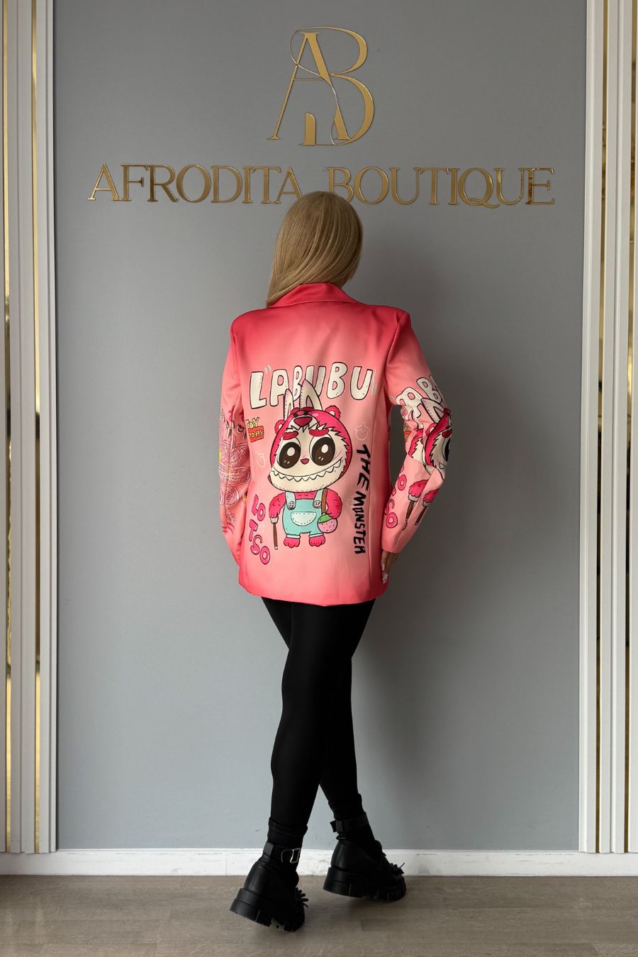 Sacou cu imprimeu Labubu – Stil urban, jucăuș și nonconformist